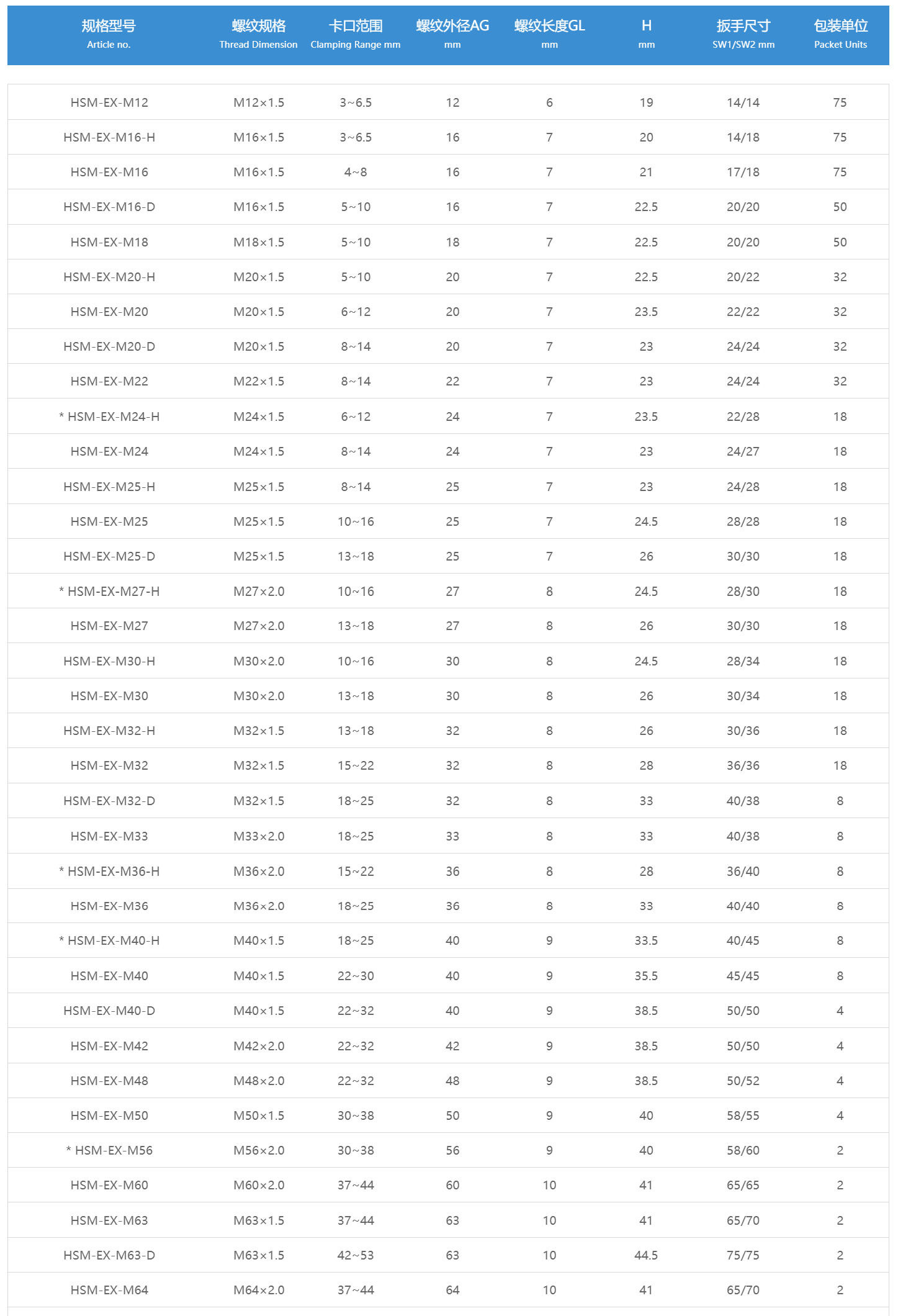 Metrisches HSM-EX-M-Gewinde Material: Das äußere Metall ist Messing, vernickelt, und die innere Kernhülse besteht aus Nylon. Das Dichtungsmaterial ist modifizierter Gummi Temperatur: -40 ℃~100 ℃, kurzfristig bis 120 ℃ Schutzstufe: Innerhalb des angegebenen Prüfpunktbereichs kann die Schutzstufe IP68 erreichen